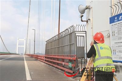 ▲检测人员在虎门大桥桥面做相关的检测工作 记者 陈栋 摄