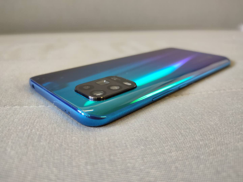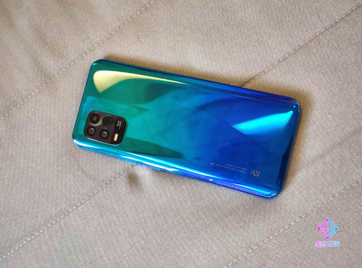 小米10青春版的背面采用双曲面玻璃,不仅手感极佳,还拥有高精密钻石刀雕刻出来的细致纹理,其反光效果极佳,无论从哪个角度观察,都能看到不一样的光影效果,拥有五种时尚的配色,分别是黑巧风暴、蓝莓薄荷、桃子西柚、四季春奶绿和白桃乌龙,我们拿到的是蓝莓薄荷,采用了蓝绿渐变的设计,非常漂亮。