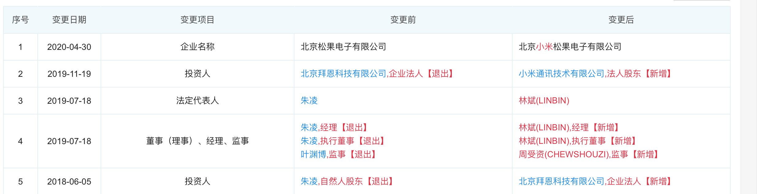 更名后的北京小米松果电子有限公司由小米通讯有限公司100%持股,认缴出资额为2.5亿元。法定代表人为小米科技联合创始人,总裁林斌。