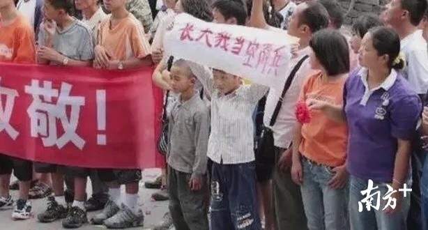 在那些忙碌的绿色身影间,程强记住了写着“黄继光生前所在部队”的旗帜,和印有“空降”字样的头盔。97天后,救援部队踏上归途,村里的父老乡亲们挤在路旁送行。身穿白色衬衣的程强在人群中张开双臂,高高地举起一条横幅,上面写着“长大我当空降兵”七个大字。