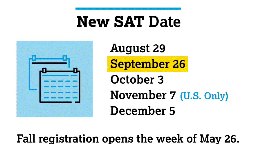 最近,CB官宣了9月的SAT考试日期(9月26日)以及放考位日期(5月26日)!也就是说,下半年的所有SAT/SAT Subject考试日期已经全部确定了!另外,也明确说了所有考位将于5月26日那一周放出!