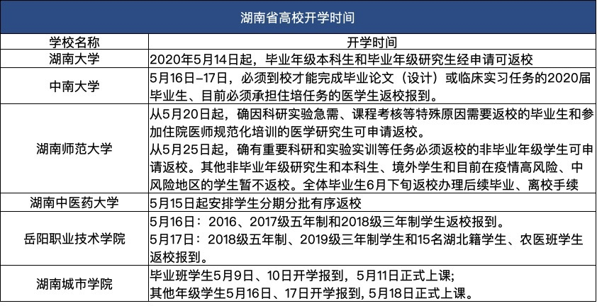 截至目前,湖南省已有多所高校明确开学时间,同时多所高校达开学条件。