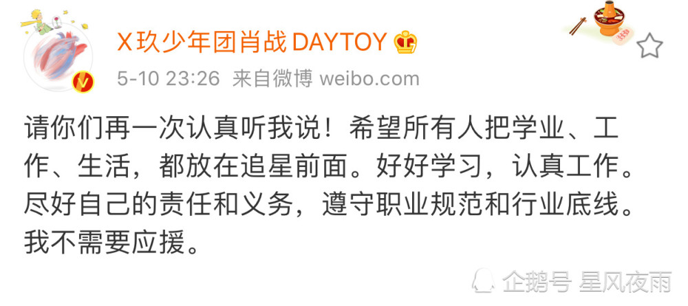 而且,肖战自出道以来,不断地在引导粉丝。鼓励粉丝好好学习、引导他们做公益、告诉他们要正确追星等等。明星引导了,能学会理智追星的早就会了,不会的他永远不会。父母时时刻刻的教育孩子,还有的孩子做事不理智呢,为什么要求一个陌生人对粉丝的行为负责任。