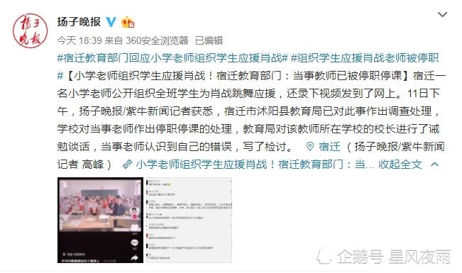 这件事之所以受到大家的关注和广泛讨论,就是因为学生尤其是小学生正是心智成长的阶段,却被老师利用来追星,这是教育上的缺陷。这位老师所受到的处罚都是应当的,“为人师者,传道受业解惑”,不应夹杂私信利用学生,将学生引上外路。