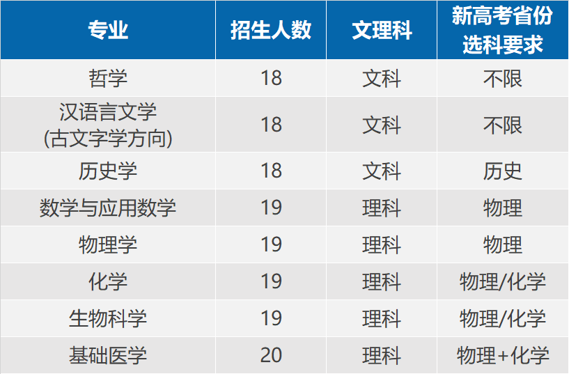 招生专业:文理基础学科、基础医学