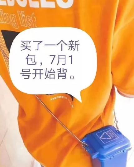 当然和妈妈那四个垃圾桶的分类垃圾包包相比,你的单垃圾桶包包实在不符合垃圾分类的最新精神。