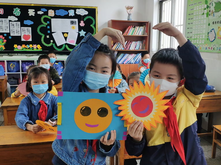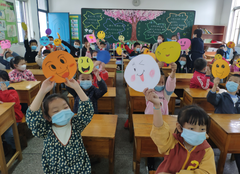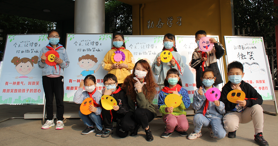 心理课毛老师向全校师生发出倡议:自己动手制作笑脸,把你的微笑送给每一个人。下课了,同学们开动脑筋,积极动手,有的用彩色卡纸做了一个比脸还要大的笑脸;有的在一次性餐盘上面也画上笑脸;还有的将笑脸做成花朵的形状……