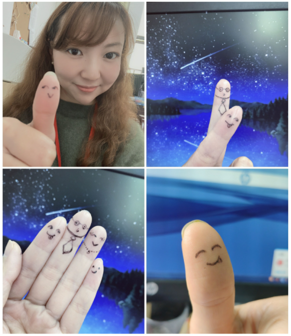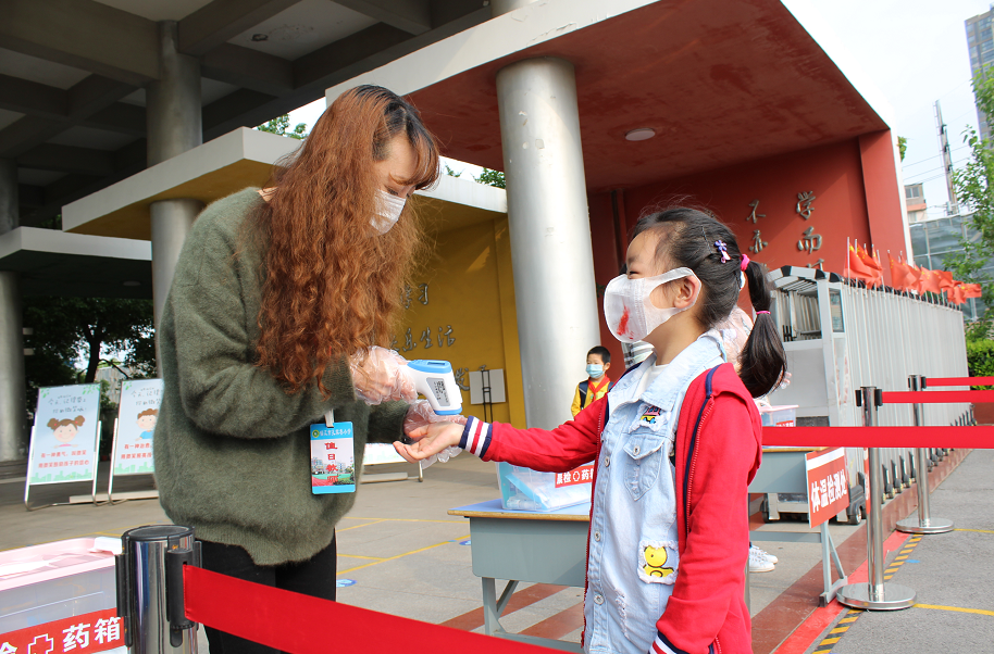 清晨,还未踏进校门,你一定会被校门口给大家测温的老师吸引。老师们今天戴的口罩与众不同。白色的口罩上用口红画上了大大的笑脸,还有的画上了腮红……一(1)班朱禹童小朋友盯着老师的口罩,好奇地说:“赵老师,你的口罩真好看!”“哪里好看?”“你戴着口罩我看不清你的表情,但是看起来,你在朝我微笑呢!”“是吗?那你也给老师一个微笑吧!”朱禹童立刻把眼睛弯成了月牙!每一位踏进校门的孩子、老师,看到测温老师脸上戴的口罩都露出了微笑。