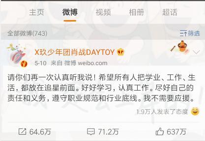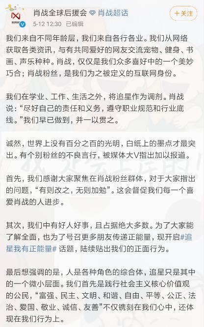 偶像团队是跟粉丝有着不可分割的联系的,在大批粉丝行为之前,他们应该及时警觉,考虑到背后的影响,进行正确的沟通和引导,而不是等事件发酵后才正视。肖战本人发过声明不需要应援,而这个课堂应援的视频显然在官方发起的应援话题下,所以这背后偶像团队是否该承认自己的疏忽并为此买单。