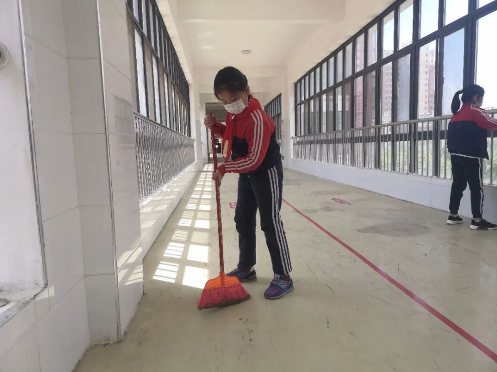 我负责责任区域内打扫卫生和擦栏杆