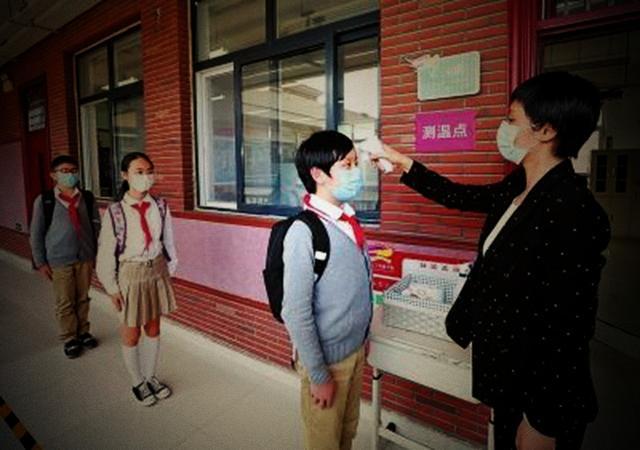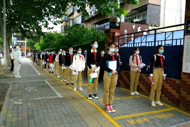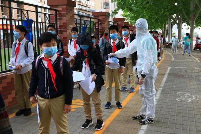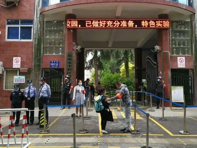 5月11日上午,郑州市金水区艺术小学的师生们重返校园复课。为避免人员聚集,学校采取分年级错时返校措施,高年级段在上午进行复学,低年级段在下午进行复学。孩子们在预定的时间段内,按照指引标志,间隔1米列队,依次有序地接受体温测试、有序入校。进入教室前,由各班正副班主任为孩子们进行二次测温并安全消毒,体温合格后方可进入。