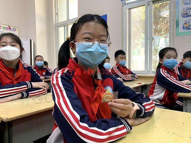 在郑州大学实验小学五(6)班教室内,张子琳和班里其他19名同学一起,拿到了学校发放的专属勋章。勋章分为小画家、小书法家、运动小达人、居家小达人、安全小达人、环保小达人等,分别用于表彰假期期间表现优秀的学生。