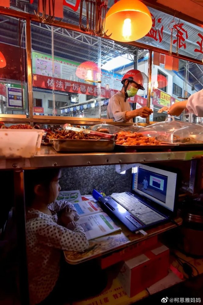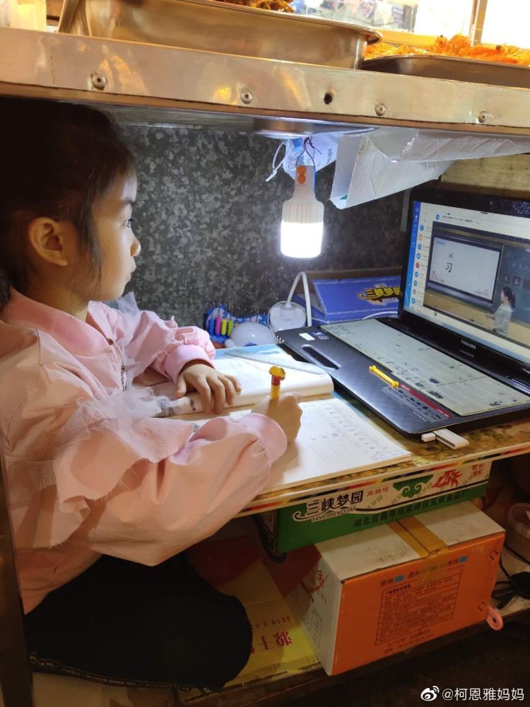 几张记录柯恩雅上网课的照片,被传到网上后,迅速发酵扩散。巨大的流量和关注度让柯恩雅成了菜市场的“小红人”,她的妈妈不得不发微博回应。
