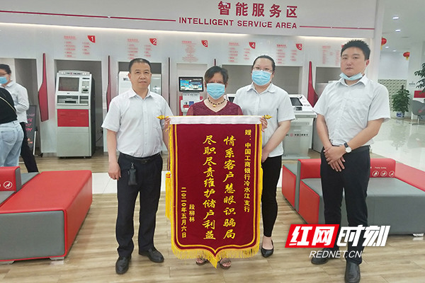 客户将锦旗送到工行娄底冷水江支行,感谢工行员工为其挽回经济损失20万元。