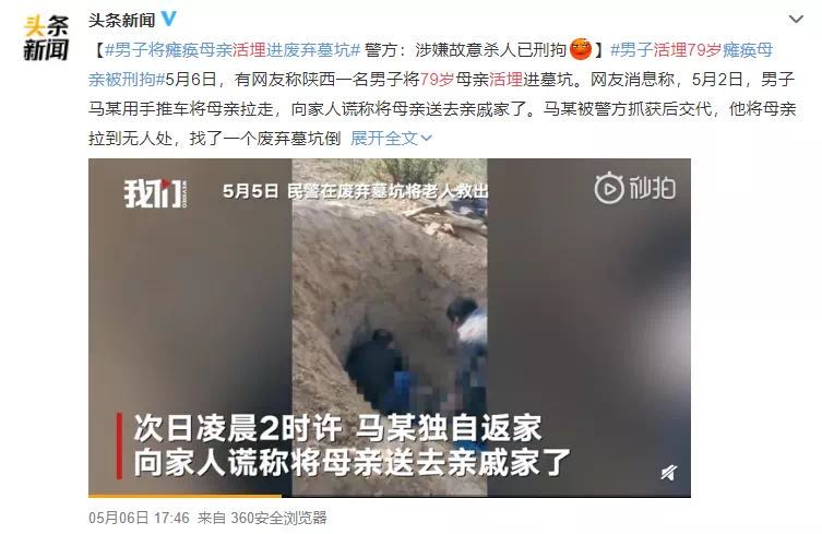 难以想象,为人子,是要有多么冷酷无情,才能如此残忍?为人母,看着自己十月怀胎,用尽一生力气去爱护的孩子,拿着铁锹,一锹又一锹地向自己身上填土,又该是多么绝望、多么痛苦?有人猜测:
