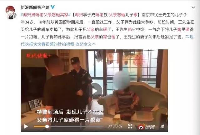 十年前,南京王先生的儿子从英国学成归来,一直没找工作。十年期间,王先生一方面因为儿子不找工作而闹心,一方面又给儿子供吃、供喝、买车、买房、操办婚礼,花了好几百万。十年后,王先生忍无可忍,卖了儿子的车。儿子不知其意,跑去砸了父亲的车。父亲怒火中烧,把儿子的家砸的一片狼藉。儿子对父亲大打出手,扬言也要砸了父亲的家。