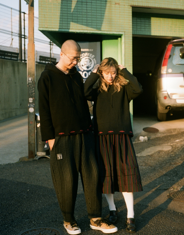 换上了另一身穿搭造型,这次李诞与黑尾酱依旧身穿情侣装出镜,这款黑色的卫衣看似简约基础,但是在衣摆加入了抽绳的元素后,就令原本单调的单品更具时尚的感觉。不同的是,黑尾酱身穿一款半身裙搭配小皮鞋,而李诞一如既往选择了宽松版型的裤子,就令穿搭更显休闲青春的感觉,脚踩上板鞋后就更显年轻气息啦。