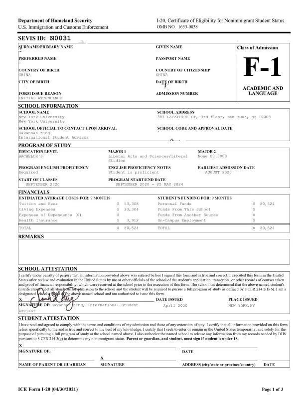 虽然NYU确定了秋季正常线下开学,但是对于国际学生来说,目前面临的最大问题是签证。在8月前无法按时获批签证也是无法到校报道的。