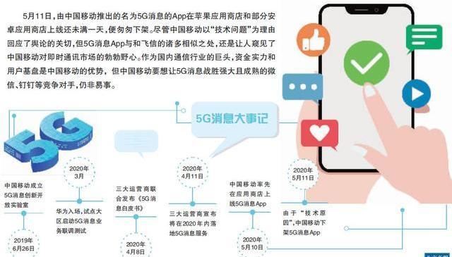 近日,中国移动推出了一款名为5G消息的APP在苹果商店和部分安卓应用商店上线,就一天时间,这款APP就匆匆下架,网友们炸锅了,大家期盼的5G消息不该是这样啊?中国移动用“技术问题”回应了网友们的质疑,但是大家还是发现了5G消息其实就是一个换壳飞信。