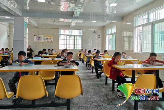 图为浙江理工大学研支团成员组织学生在餐厅就餐。浙江理工大学研支团 供图
