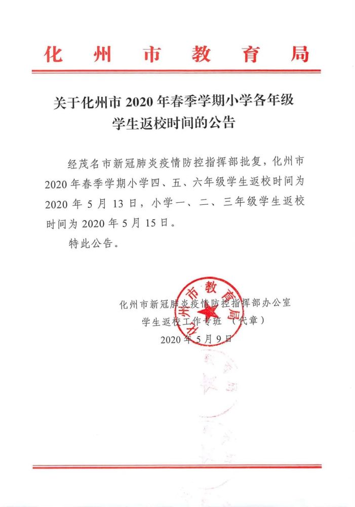 5月18日,全市各类幼儿园大班幼儿开学;中、小班(托班)幼儿由各地根据实际,安排在5月18日后,一周内有序开学。