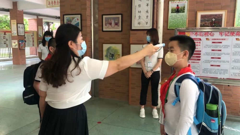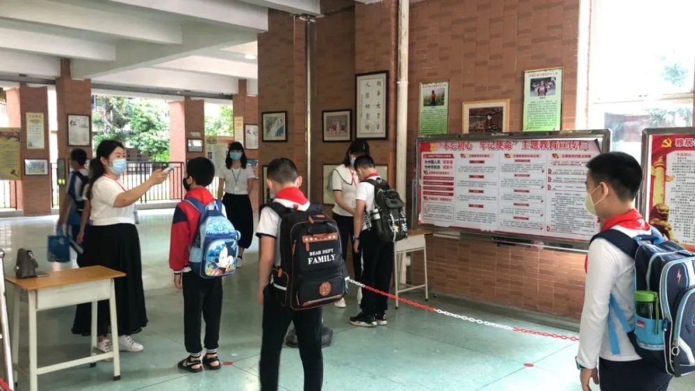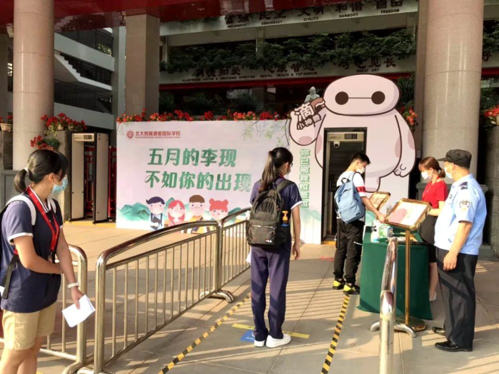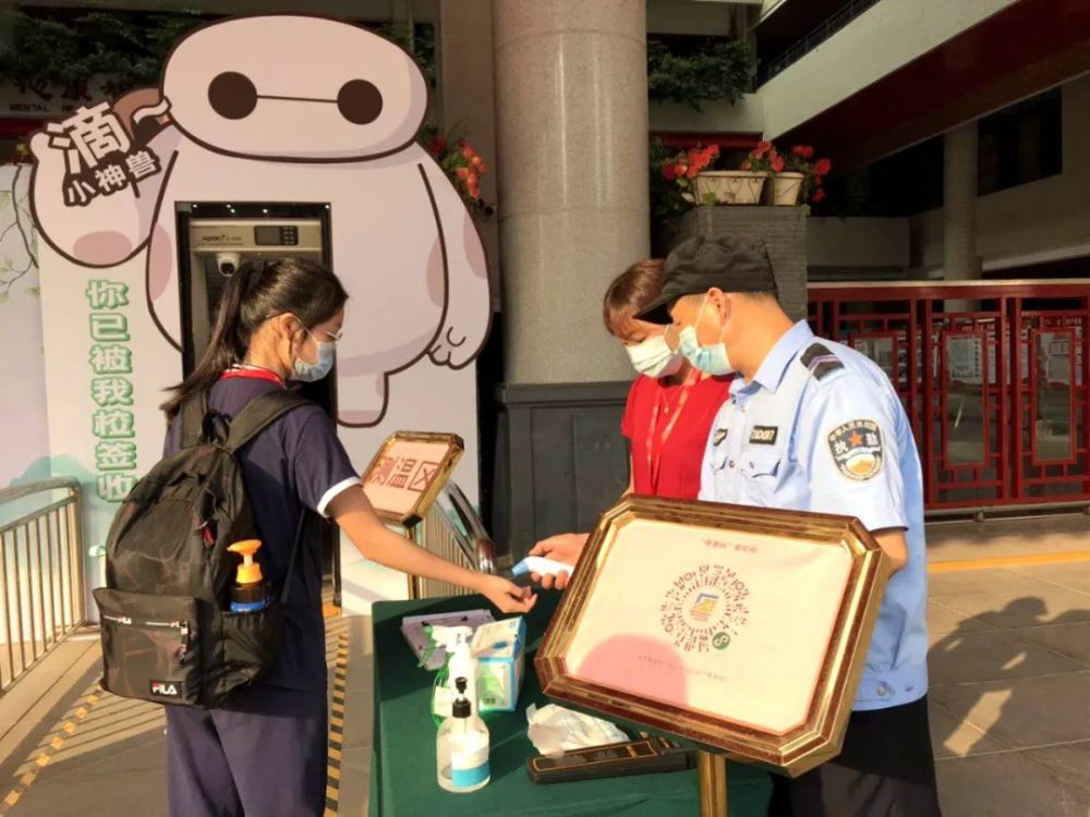 进校门前还要经过一次红外线检测,再次确认体温之后就可以进校,提交健康表和粤康码了。