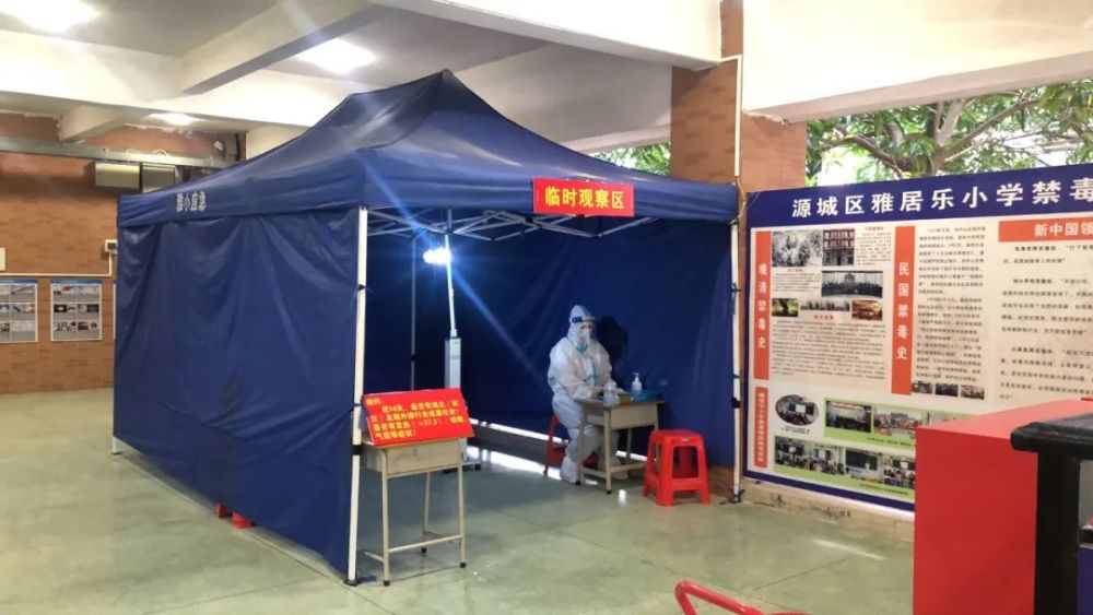 检测区旁边设置有临时观察区,体温检测有异常的同学将在这里进一步观察检测。