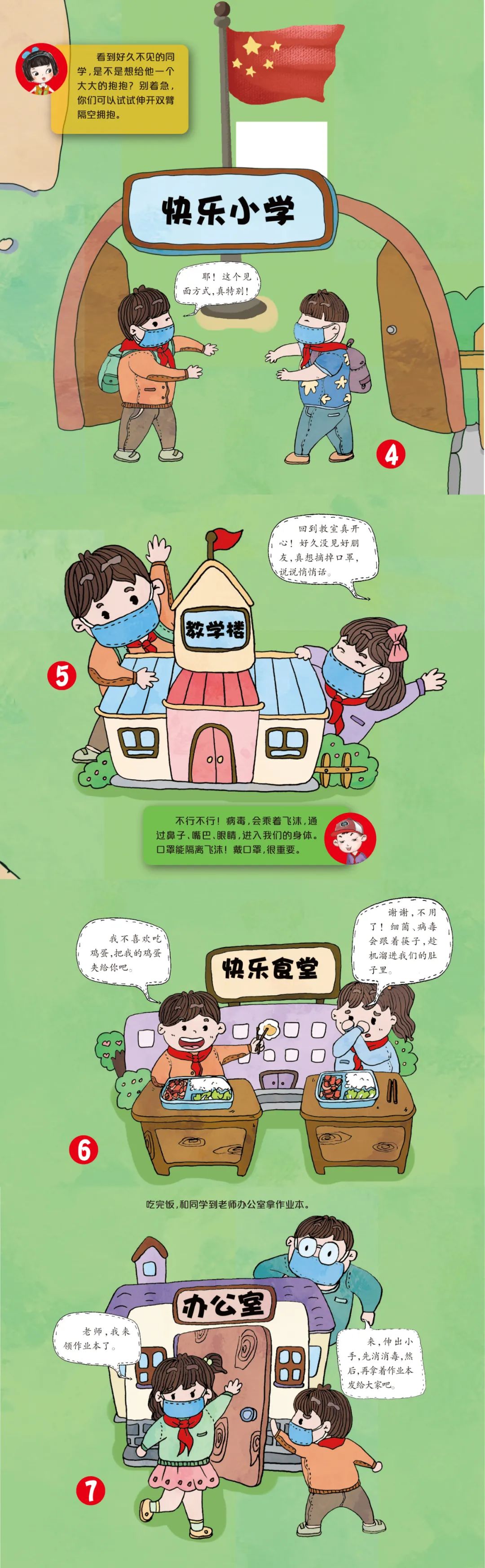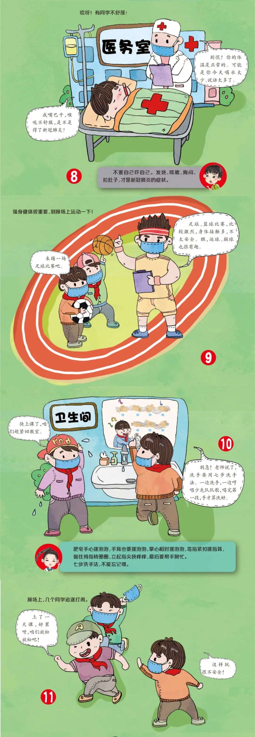 特刊还专门绘制了“防疫小达人”画报,里面藏着“防护宝典”。“把这张画报贴墙上,每天看一看,我也能成‘防疫小达人了!’”同学们拿着特刊,边看边高兴地说。