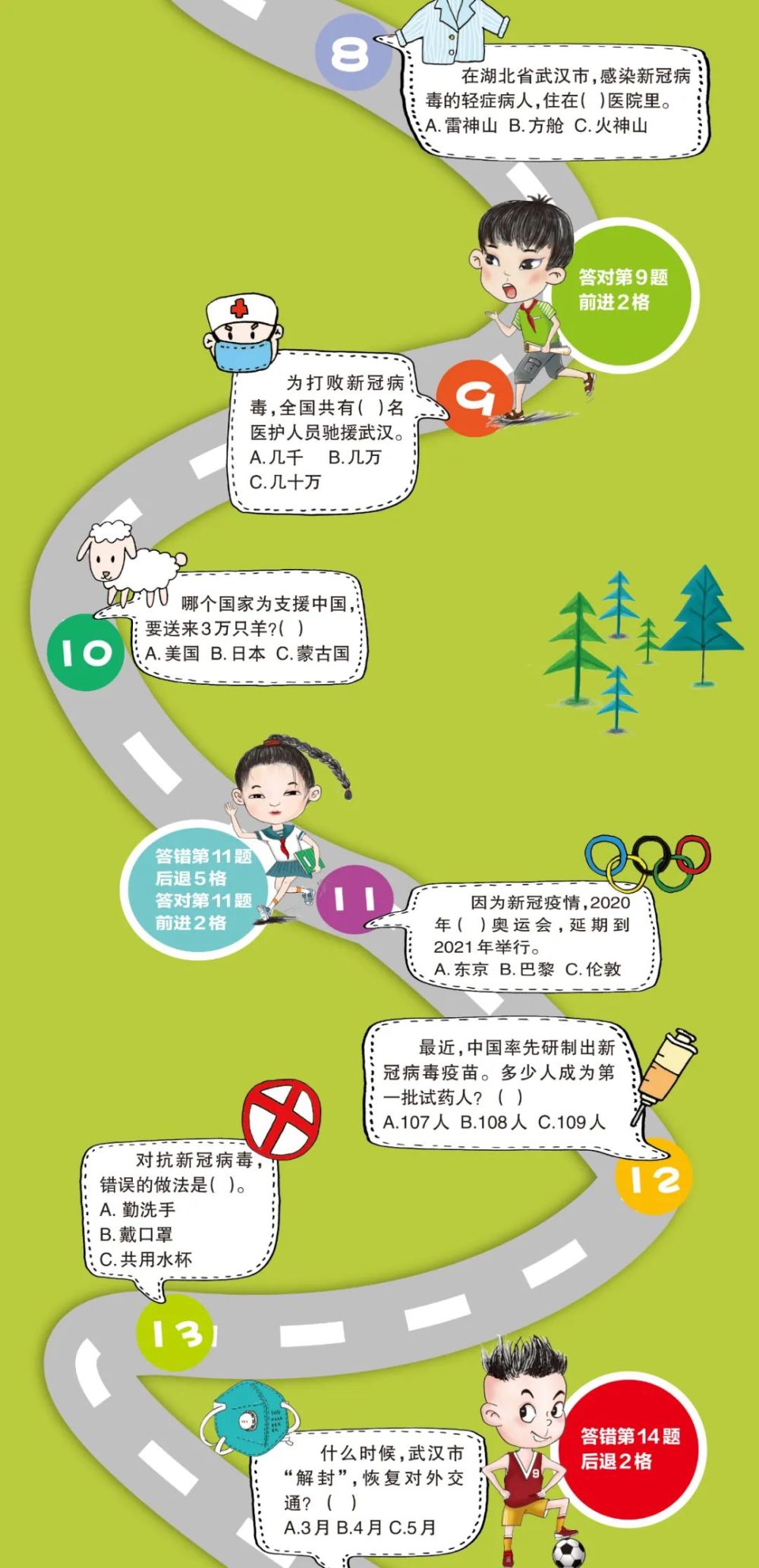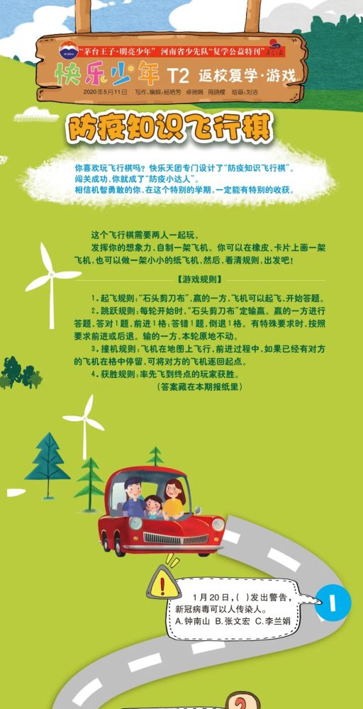 学生返校复学首日,河南省少先队队报《河南青年时报・快乐少年》推出了“复学公益特刊”。为了方便同学们学习防疫知识,特刊专门设计了“防疫知识飞行棋”。
