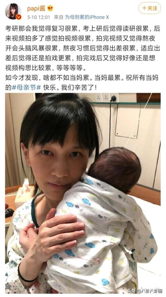 原因是由于她在5月10日母亲节当天发了一条微博,主要是感叹母亲的不容易,还附带了一张抱着宝宝的自拍照。作为新手妈妈,在过的第一个母亲节,有所感叹也是人之常情。