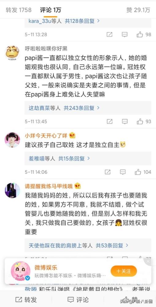 不料因为这样一条看似普通的微博,却把自己推在了风口浪尖。网友们疯狂的评论着,Papi酱生子后过于憔悴,双眼无神,没有往日的光彩。更有意思的是,大批量的网友开始讨论,Papi酱不是独立女性的代表吗?为什么自己生的宝宝不是跟自己姓,而是跟孩子父亲姓?