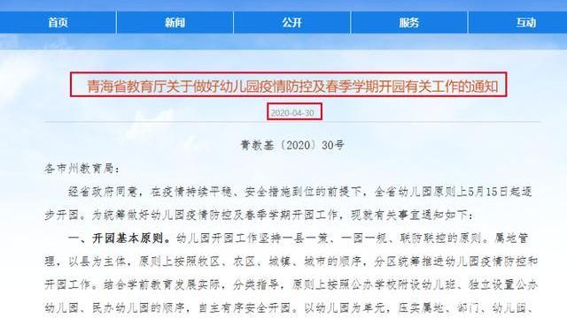 青海:全省幼儿园5月15日起陆续开学。