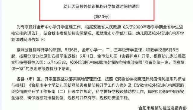 河南: 新乡市则将于 5 月 6 日起,全市幼儿园和特教学校开始分批、错峰报到;滑县将于5 月 6 日起分批返园复学。