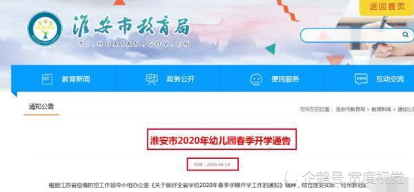 江苏:4月24日江苏省教育厅发布通知,对符合开园条件的幼儿园自5月6日起,由各县区统筹安排,实行分批错峰、按需弹性开学。