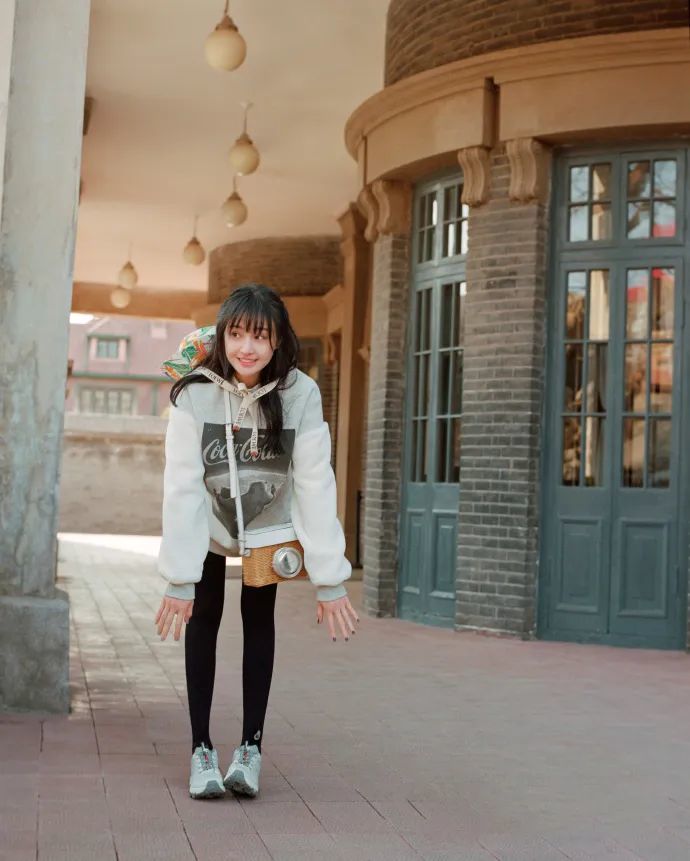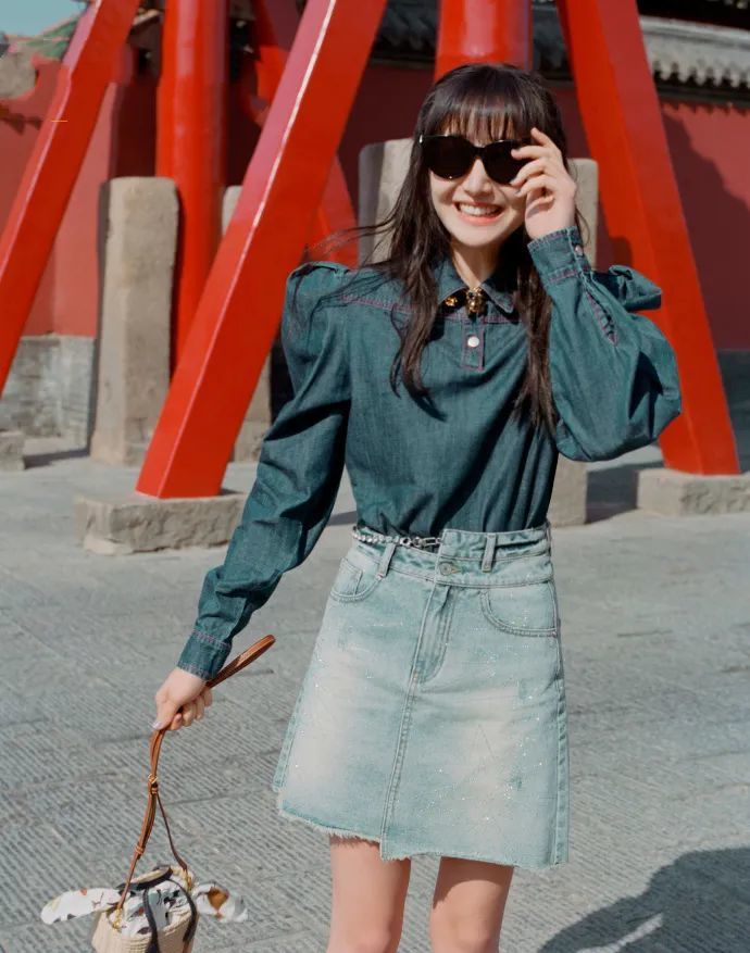 除了复古风的服装单品,在穿着休闲日常单品的时候,也可以借由一些复古风的饰品,来搭配出你想要的风格。像是包包的形态是比较多变的,中规中矩的小方包不够看,但是如果设计成邮差包,或者像郑爽手上这款设计成相机样式的包包,就可以为复古风加分了。