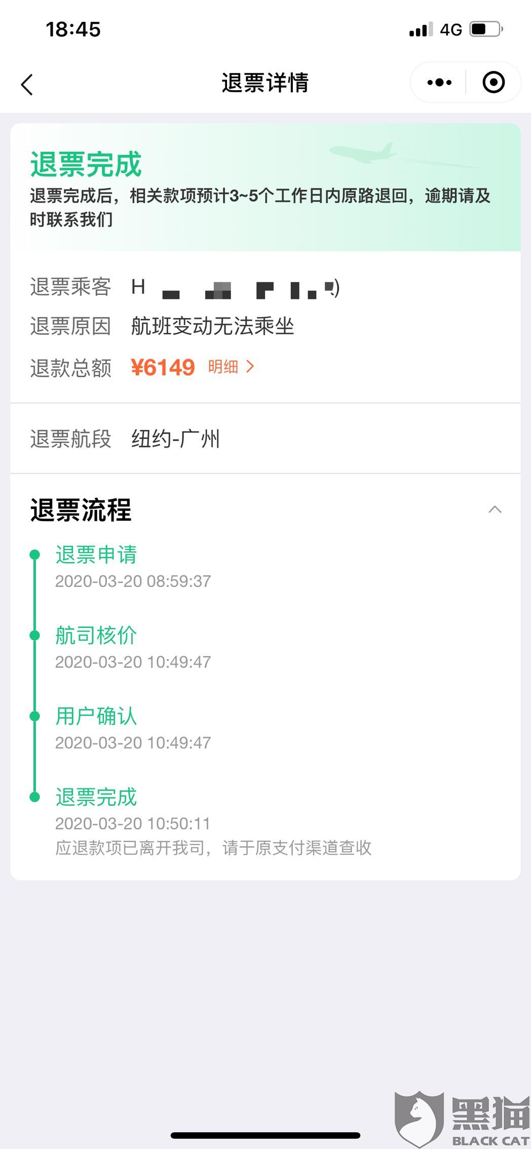 消费者“赛茵电子厂siyean”在3月23日向黑猫投诉平台反映:“2.13号通过微信在同程艺龙 购买了一张2.24号纽约直飞广州的机票 航班2.14号告知取消航班 但是我没有进行退票 后来2.18号航班已经恢复 票也没退 还是正常的情况 航空公司没有告知恢复航班 后来订单被强行要求更改或者退票。既然我没有退票 航班又恢复正常 为什么要强制我退票 就因为我买的便宜吗?”