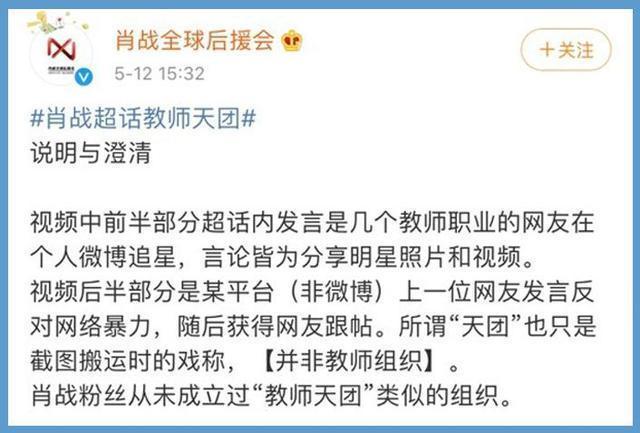 肖战粉丝从未成立“教师天团”类似的组织。