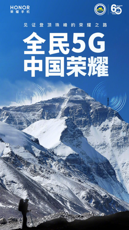 今年既是人类首次从北坡成功登顶珠峰60周年,也是中国首次精确测定并公布珠峰高程45周年。荣耀手机作为本次‘2020珠峰测量登山活动’唯一指定的5G手机,与英勇专业的中国登山队合作,共同冲顶世界之巅的举措,开启了新时代5G新纪元。