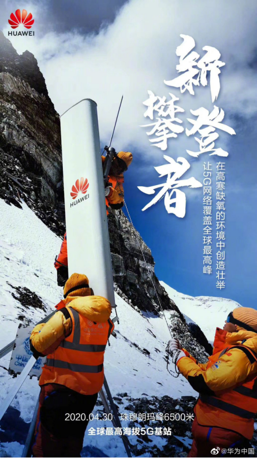 60年后的4月30日,华为助力中国移动建设世界最高双千兆网络,全球海拔最高的5G基站正式开通。从海拔6500米的前进营地、海拔5800米的过渡营地,到5300米珠峰大本营的5个5G基站已全部投入使用。