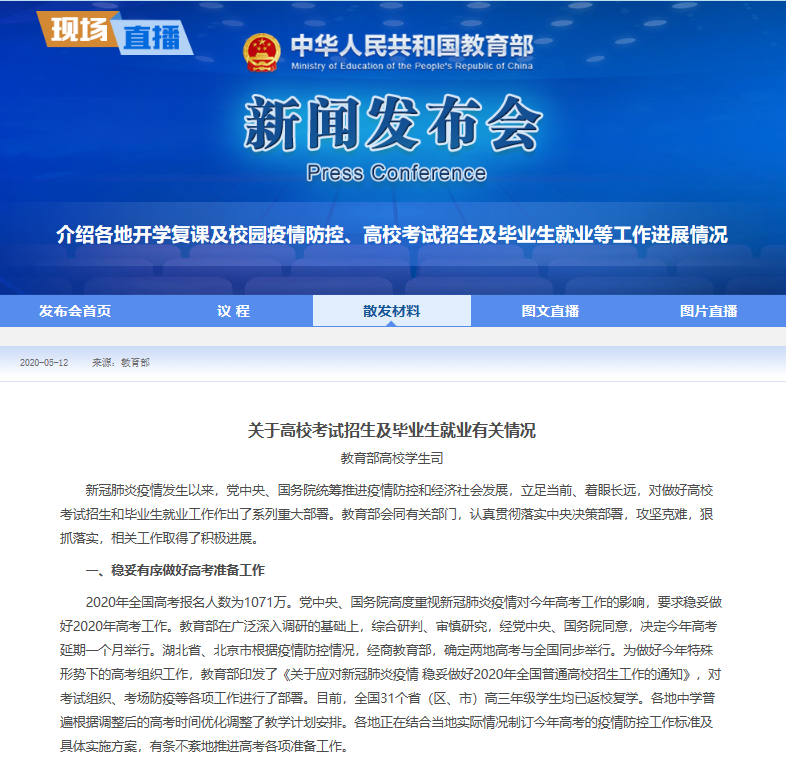 今天,教育部召开新闻发布会介绍各地开学复课及校园疫情防控、高校考试招生及毕业生就业等工作进展情况。从发布会上,南昌留学云小编了解到几个重要信息!