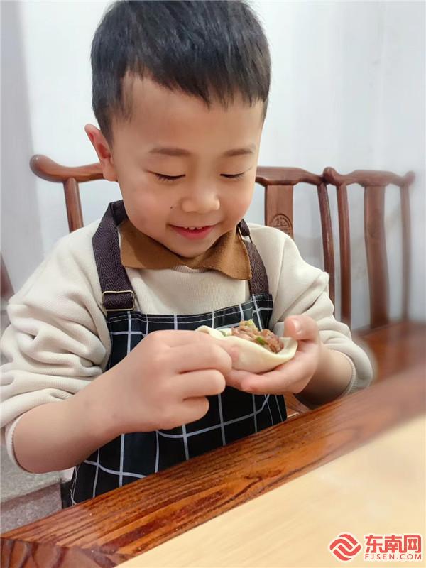 为妈妈制作爱心水饺(东宅村新时代文明实践站供图)