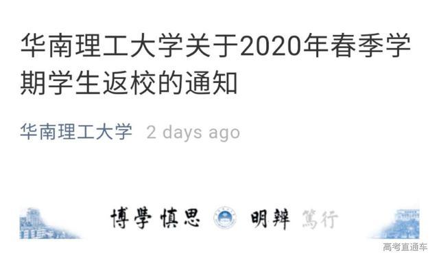 5月9日,华南理工大学发布《关于2020年春季学期学生返校的通知》。通知表示,2020年5月12日起安排学生分期分批有序返校。具体返校时间及相关要求由各学院通知每一位学生。