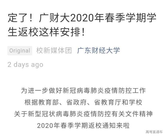 5月9日,广东财经大学发布《关于师生返校安排的通知》。通知表示,自5月17日起安排本科毕业班学生、自6月18日起安排研究生毕业班学生分期分批错峰返校。其他非毕业班学生本学期不返校。