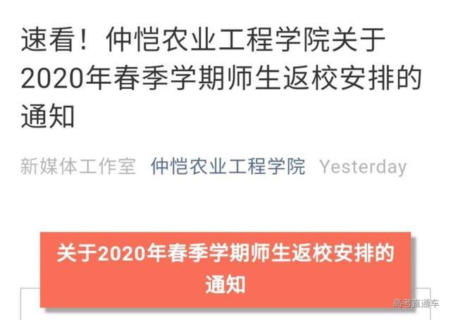 5月10日,仲恺农业工程学院发布《2020年春季学期师生返校安排的通知》。通知表示,自5月13日起至6月28日安排毕业班学生分批返校,暂不安排非毕业班学生规模批量返校。