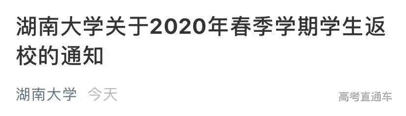湖南大学关于2020年春季学期学生返校的通知