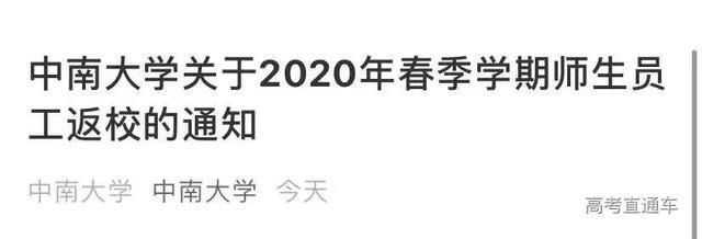 中南大学关于2020年春季学期师生员工返校的通知