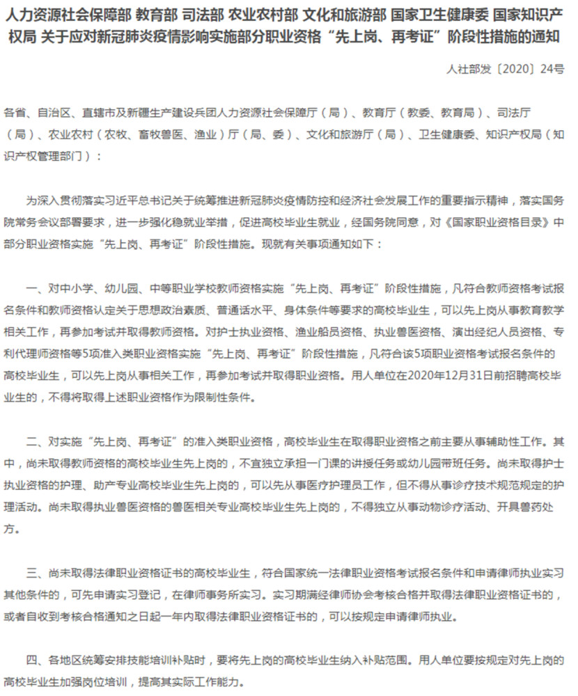 教育部现已明确规定,在2020年12月31日前,教师岗位的应聘人员可以先上岗再考证。在我看来,这个规定既充满人性化,又对今年众多想要做老师的高校毕业生而言,无疑是一个天大的好消息。