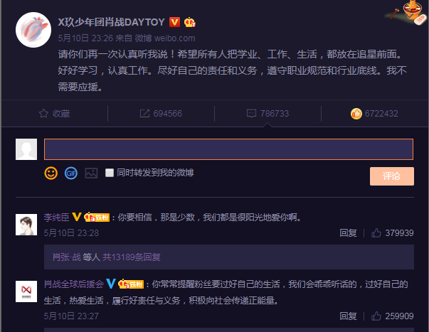 虽然也是有不少网友质疑肖战的粉丝团体,但是不管如何,作为当下最火的偶像艺人,肖战对这件事情采取的态度还是比较积极正面的,一系列声明也起到一定作用,圈内对肖战的态度也在逐渐转变,但是应该也需要一个过程。