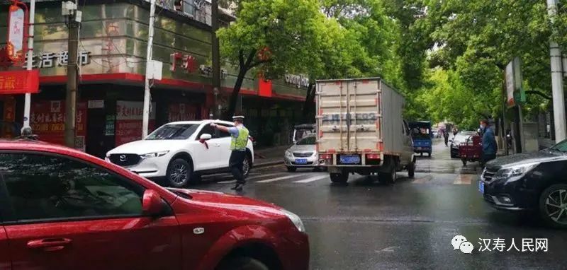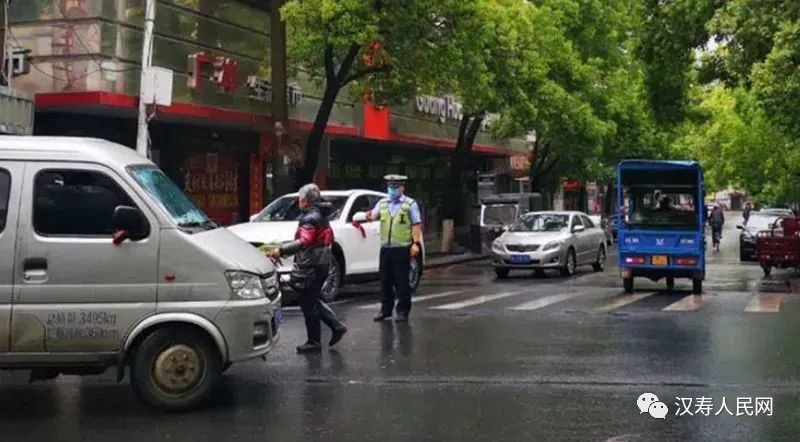 4月20日,是汉寿县小学各年级复学复课的日子。放学高峰期,天空突然下起了大雨,路面的车流量非常的大,协警彭伟和同事正在县城区二完小路口冒雨指挥交通,一辆路过的黑色轿车车主放慢车速,给正在执勤中的彭伟递了一把伞。这样的举动让彭伟心头一暖。