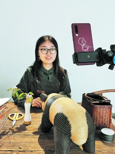 疫情期间出门少,崇州市道明镇的肖瑶和男朋友购买了专业设备,学习剪辑制作,通过网络视频传授竹编技艺,没想到第一部视频上线后便迅速成了“爆款”。“下一步,我们将通过直播推广竹编体验。大家可以在网店上购买材料包,在家就可以体验我们的竹编文化。”肖瑶开了直播间,不时和网友进行互动,“在扩大道明竹编知名度的同时,也拓展了竹编产品的销路。”